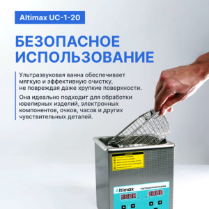 Ванна для ультразвуковой очистки Altimax применяется в работе с прецизионными электронными устройствами, фильтрационными системами, часовыми механизмами и часами, стеклянными, металлическими, ювелирными и медицинскими предметами.