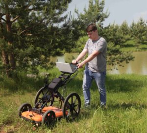 Георадар-моноблок – это георадар и антенна в едином корпусе, который соединяется с ноутбуком кабелем Ethernet.