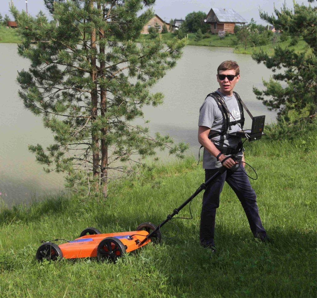 Низкочастотный экранированный антенный блок АБ-150 имеет центральную частоту 150 МГц, что позволяет проводить исследования на глубину до 12 метров. В комплект антенны входит монолыжа и съемный колесный набор.