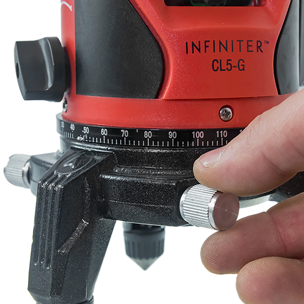 Поворотное основание в INFINITER CL-5G плавно выполнит наведение вертикальных линий с высокой осевой точностью. Функция пригодится при монтаже металлических конструкций, при декорировании помещения и установке светильников.