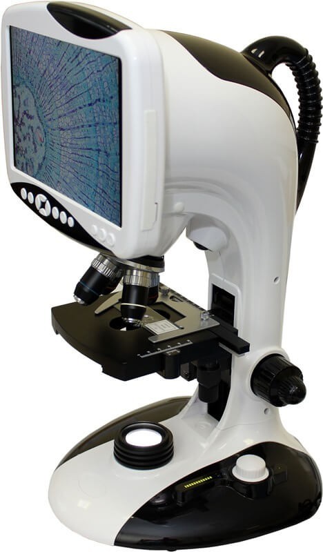 LCD микроскоп Биолаб В-3 Цифровой LCD-микроскоп Биолаб В-3 это высокотехнологический микроскоп с интегрированным LCD-дисплеем, профессиональной камерой высокого разрешения и картой памяти большого объема. Исследуемые объекты наблюдаются на 9-ти дюймовом дисплее для легкой и комфортной работы. Изображения, получаемые на дисплее, а также видеоролики можно сохранить на карту памяти. Преимущества для пользователя: — Высокое качество получаемых изображений, разрешение камеры 12 МПкс;- Наличие LCD-дисплея вместо традиционных окуляров облегчает работу оператора;- Возможность сохранять фотографии и видеофайлы на SD-карту памяти;- Возможность подключать микроскоп к внешнему дисплею или проектору с HDMI-разъемом позволит демонстрировать препараты в аудитории;- Наличие встроенной шкалы позволит легко и точно проводить измерения линейных размеров; Отличительные особенности: — Большой 9″ LCD-монитор;- Профессиональная камера высокого разрешения 12Мпкс;- Светодиодная система для исследования в проходящем свете и боковой осветитель;- 4 стандартных объектива увеличением: 4х; 10х; 40; 100х;- 2 объектива малого увеличения с увеличенным рабочим отрезками: 1х и 2х;- В комплектацию входит SD-карта памяти.