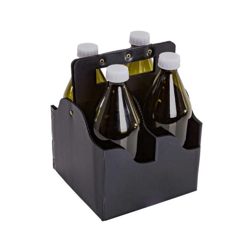 Переноска на 4 бутылки (1л стекло) полипропилен (гофра)