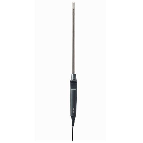 При подключении к измерительному прибору testo 635 прочный зонд влажности предназначен для измерения относительной влажности и температуры воздуха на складах, рабочих и холодильных зонах, а также в воздуховодах и каналах систем ОВКВ. Кроме того, возможно измерение равновесной влажности в сыпучих материалах. Для этого необходимо активировать функцию расчет содержания воды (Н2О) в измерительном приборе, а измеряемый материал должен находиться в неподвижном состоянии (сыпучая ангидридная стяжка, сыпучая цементная стяжка, силикатный кирпич, бетон, изоляционная кирпичная кладка, сплошной кирпич, древесина твердых и мягких пород, пенобетон и ДСП).