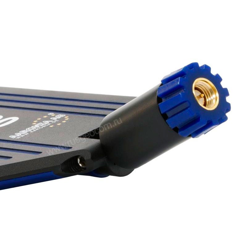 Сама антенна имеет вид черного плоского прямоугольника с разъемом SMA для подключения к радиоизмерительному оборудованию. Разъем имеет подвижный механизм, позволяющий позиционировать антенну в пространстве. С его помощью можно размещать ее под любым углом в пределах 90° и фиксировать с помощью поворотных винтов. Прочный корпус обеспечивает защиту всех компонентов от повреждений и природных факторов — антенну можно эксплуатировать в сложных полевых условиях.