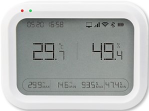 • Крупный, яркий и контрастный LED-дисплей с индикацией текущих значений температуры и влажности, зарегистрированных данных (MAX и MIN) для температуры и относительной влажности, уровня заряда, установленных меток, сигнала тревоги, текущей даты и времени, единиц измерения – визуальный контроль соблюдения или нарушения установленного режима температуры и относительной влажности.