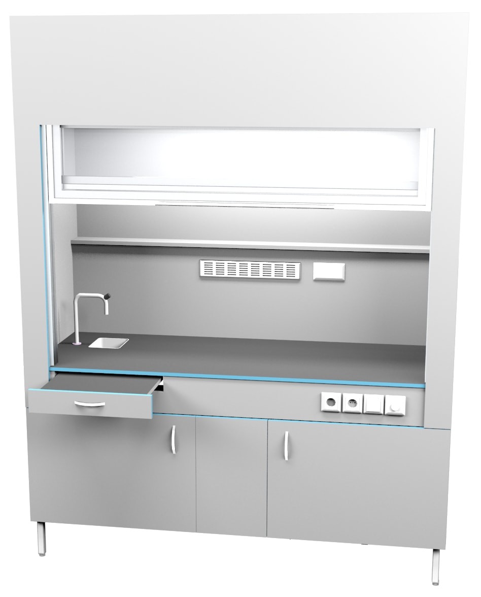 Шкаф вытяжной с сантехникой ШВ НВК 1800 КГ+ (1800×716×2200). Описание: Вытяжные лабораторные шкафы применяются при работе с токсичными и вредными летучими материалами, с чистыми материалами, с растворением или разложением под температурной обработкой, при проведении анализа проб и многих других. Особенности: Полипропиленовая раковина, обладающая высокой химической стойкостью Химически стойкий кран из латуни с полипропиленовым напылением для подключения холодной воды Дополнительная подсветка сбоку с плавной регулировкой Выдвижной столик Вытяжка из нижней тумбы позволяет хранить в ней реактивы Ударопрочный подъемный кран легко поднимается одной рукой Экран в поднятом состоянии не увеличивает высоту шкафа Внутри рабочей камеры полочка для хранения реактивов Две влагозащищенных розетки с крышкой внутри рабочей камеры Специальные доводчики в тумбе позволяют закрывать тумбу бесшумно По заказу столешницы могут быть выполнены из: химстойкого пластика керамогранита (плитка) полипропилена нержавеющей стали монолитной керамики эпоксидного керамзита