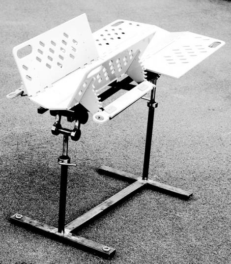 - Столешница установлена на станине с помощью двух телескопических стоек, позволяющих в широком диапазоне варьировать высоту стола и угол наклона стола в продольном направлении.