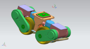 • Транспортная платформа построена на основе 2-х осевой схемы, позволяющей реализовывать алгоритмы проезда тройниковых соединений, объезда препятствий, движения по произвольной траектории.
