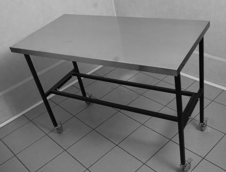 - Каркас стола выполнен из металла, покрытого порошковой краской, а столешница — из нержавеющей стали. Конструкция прочная и функциональная.