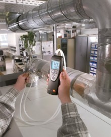 В приборе предусмотрено сглаживание пульсаций для плавного вычисления среднего значения, а также встроенная компенсация плотности. Текущее значение можно зафиксировать на дисплее с помощью кнопки HOLD. Измеренные макс./мин. значения могут быть отображены на дисплее Testo 512 или сохранены в памяти.