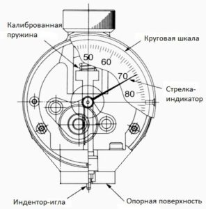Вылет индентора от опорной поверхности прибора при нулевом показании