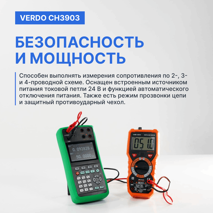 Калибраторы сигналов VERDO CH3903 предназначены для измерения и воспроизведения постоянного тока и напряжения, сопротивления и частоты. Приборы имеют низкую погрешность в 0,008%.