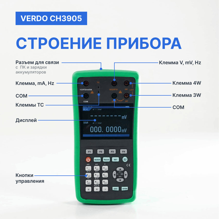 Verdo CH3905 Калибратор портативный с функцией измерения, 0.008%, RTD, TC, F, HART