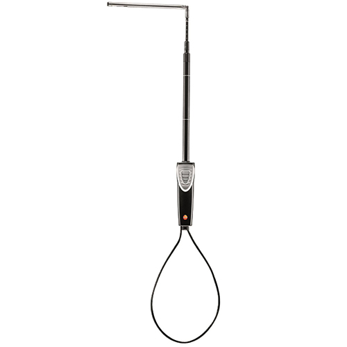 Используйте зонд с обогреваемой струной (термоанемометр) для определения скорости потока и объемного расхода в воздуховодах или на стенных/потолочных вентиляционных отверстиях. Особенно подходит для измерения низких и средних скоростей до 20 м/с. Зонд также одновременно измеряет температуру, влажность и абсолютное давление.